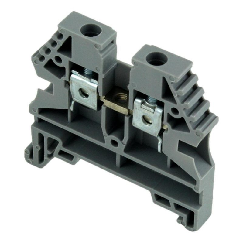 Bornier DIN 10mm² avec vis, pour phase. Installation compacte et fiable sur rail DIN pour circuits électriques.