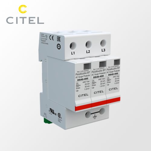 Les parafoudres de type 2 DS40 sont utilisés principalement pour la protection des réseaux monophasés et triphasés au niveau du TGBT. Le schéma électrique inclut une association de varistances forte puissance équipées de déconnecteurs et de leurs indicateurs associés : ce montage permet de garantir une capacité d’écoulement renforcée. Les parafoudres DS40 sont destinés à être montés en multipolaire pour protéger les réseaux mono, tri ou triphasé+Neutre, parfois associés à un parafoudre spécifique N/PE.